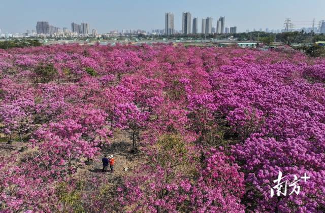 1月5日,在中山市西区街谈朗窖花木分娩基地,连片扶助的紫花风铃木投入盛花期。微风吹过,落英缤纷,如同下起了一场粉紫色的雪。唯好意思狂放的现场引诱了繁密市民前来不雅赏。笃定>>>